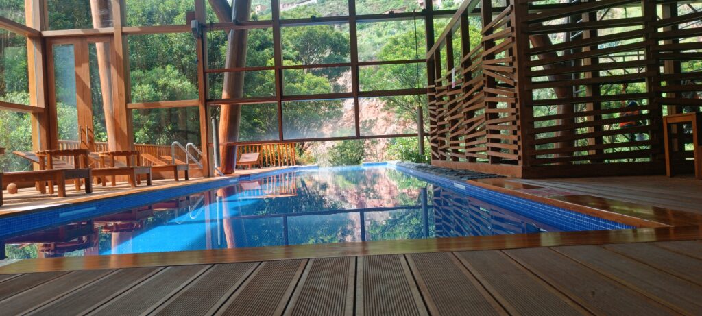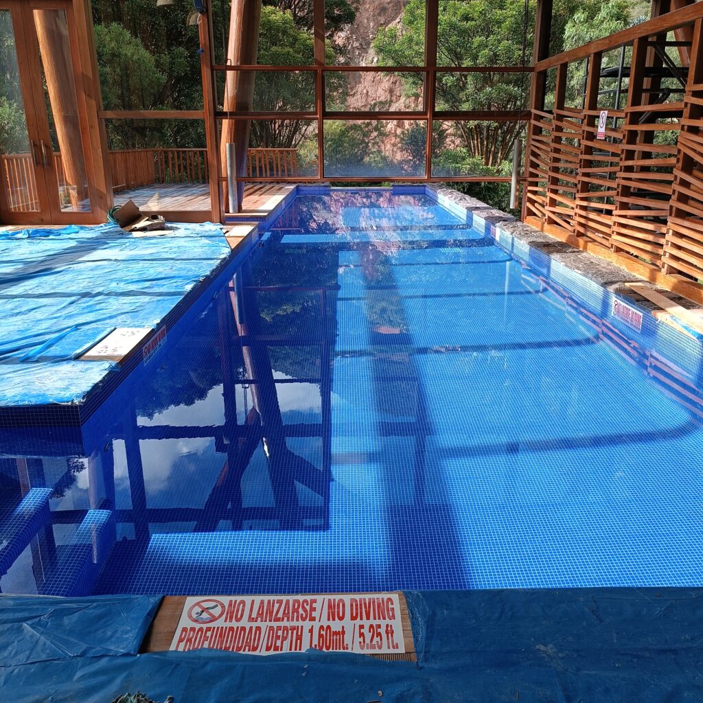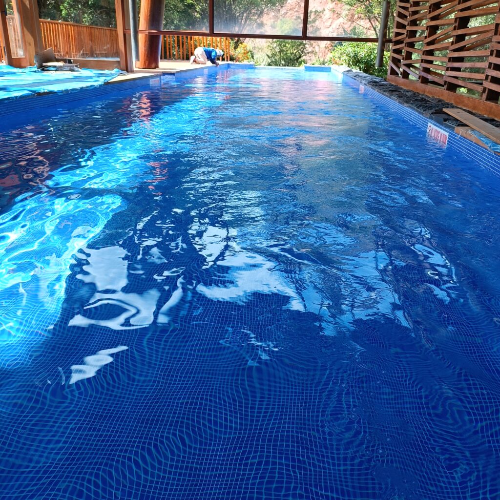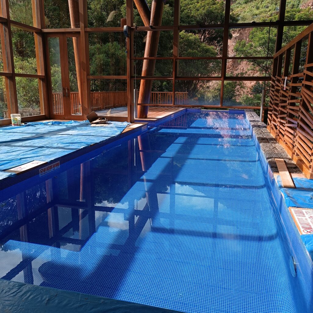 Urubamba Publicado por World House Deco Reparación estructural y sistema de impermeabilización, con cambio de acabado interno y mantenimiento del deck de bambu. Implementación de iluminación led y nadocontracorriente marca astralpool.